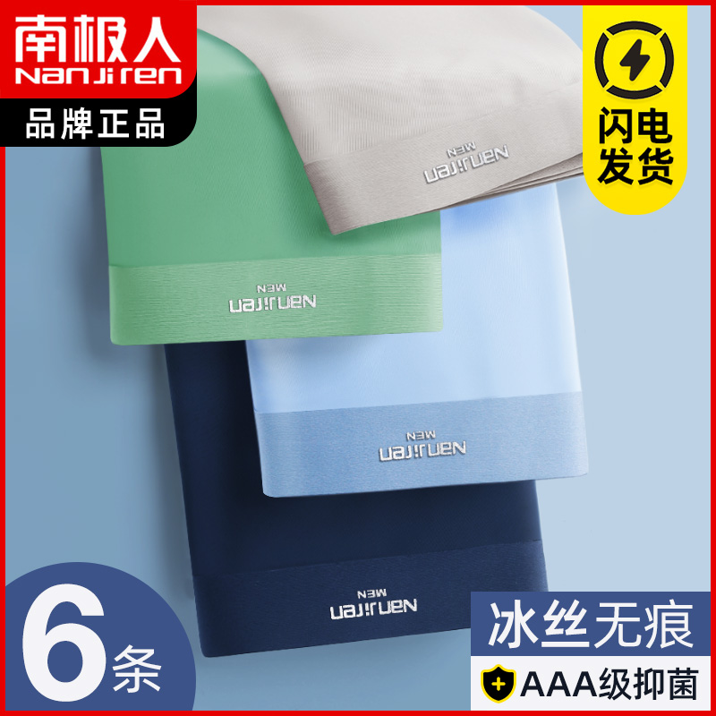 【产品名称:南极人冰丝无痕内裤男士网眼透气平角抗菌棉裆薄款大码四角短裤头】