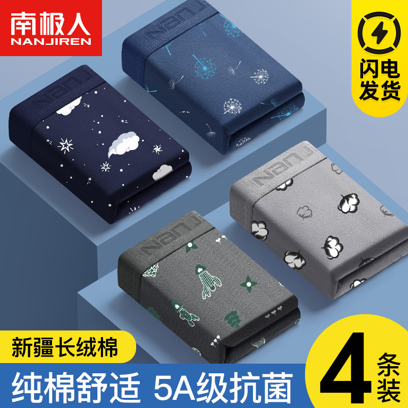 【产品名称:南极人纯棉抗菌男士内裤男生款性感大码四角短裤加肥加大平角底裤】