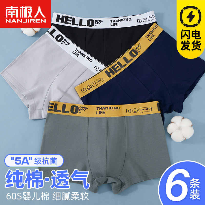 【产品名称:南极人纯棉抗菌男士内裤男生四角运动大码秋季薄款透气平角底裤头】