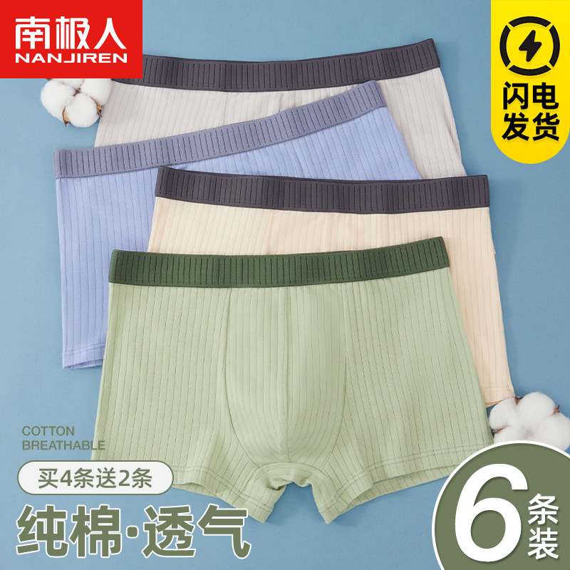 【产品名称:南极人纯棉抗菌男士内裤男生运动大码平角四角宽松大码透气短裤头】