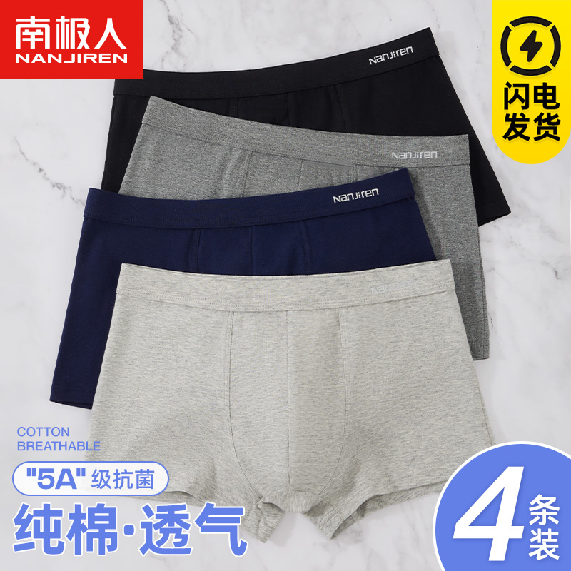 【产品名称:南极人纯棉抗菌男士内裤男性感平角裤青年运动大码宽松四角短裤衩】