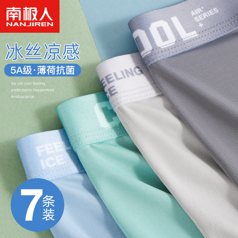 【产品名称:南极人冰丝凉感内裤男士无痕抗菌夏季薄款透气平角裤衩四角短裤头】