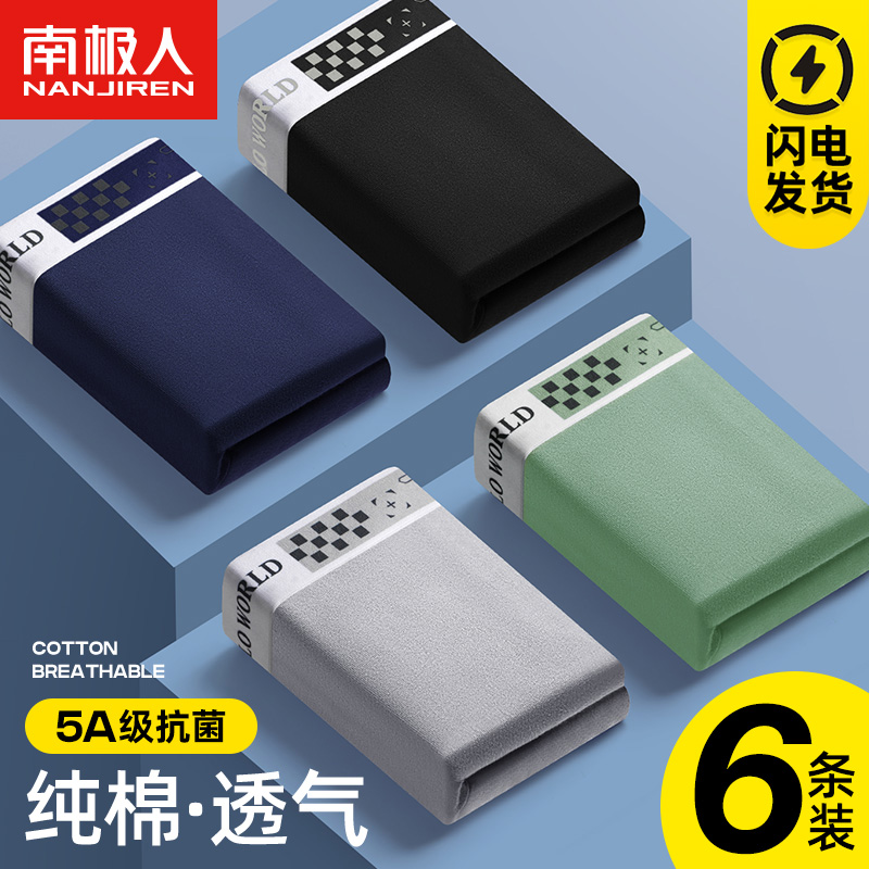 【产品名称:南极人纯棉抗菌内裤男士透气平角裤衩运动大码四角底裤头夏季薄款】