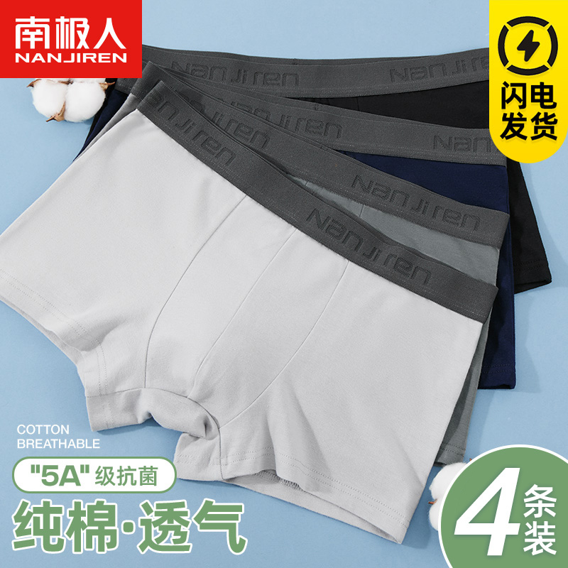 【产品名称:南极人纯棉抗菌内裤男四角运动大码透气夏季薄款性感宽松平角裤头】
