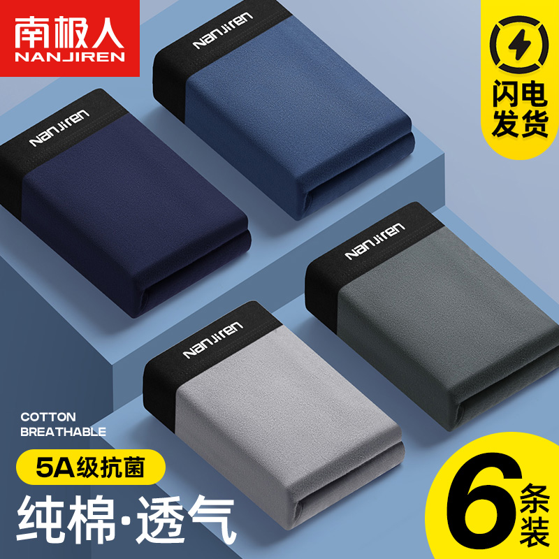 【产品名称:南极人纯棉抗菌透气内裤男士四角宽松大码平角底裤头性感夏季薄款】