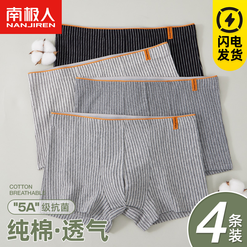 【产品名称:南极人纯棉内裤男士抗菌潮流个性感四角裤衩运动加肥加大平角裤头】