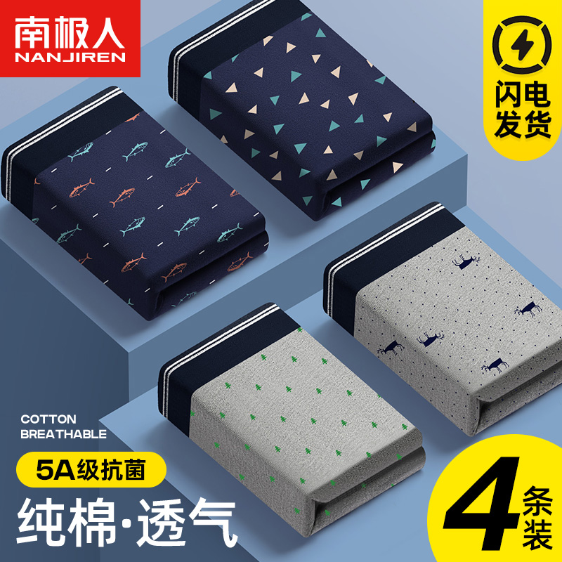 【产品名称:南极人纯棉透气内裤男士抗菌大码平角夏季薄款宽松中腰四角底裤头】