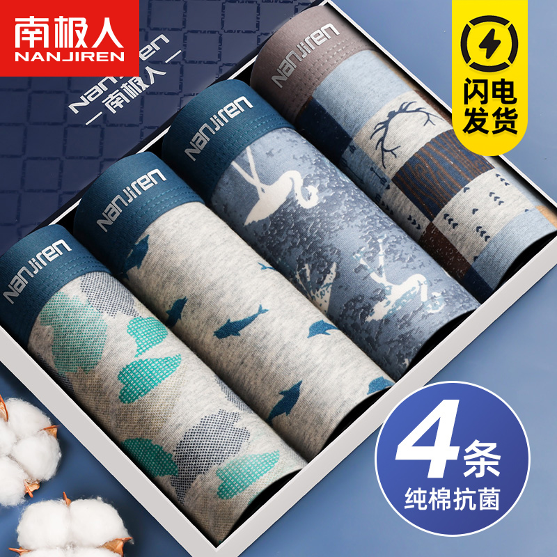 【产品名称:南极人纯棉透气内裤男士抗菌个性潮运动大码平角短裤性感中腰四角】