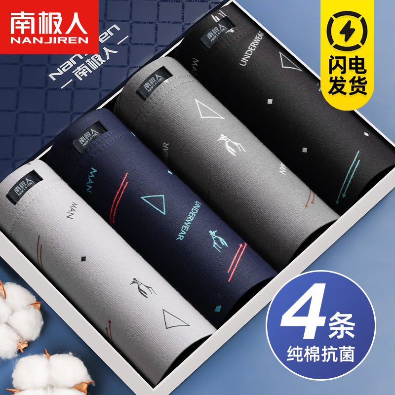 【产品名称:南极人纯棉透气内裤男士抗菌时尚印花新款平角性感大码四角短裤头】