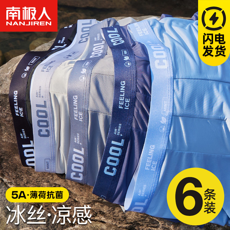 【产品名称:南极人凉感冰丝内裤男士抗菌透气夏季薄款透气裤衩四角平角短裤头】