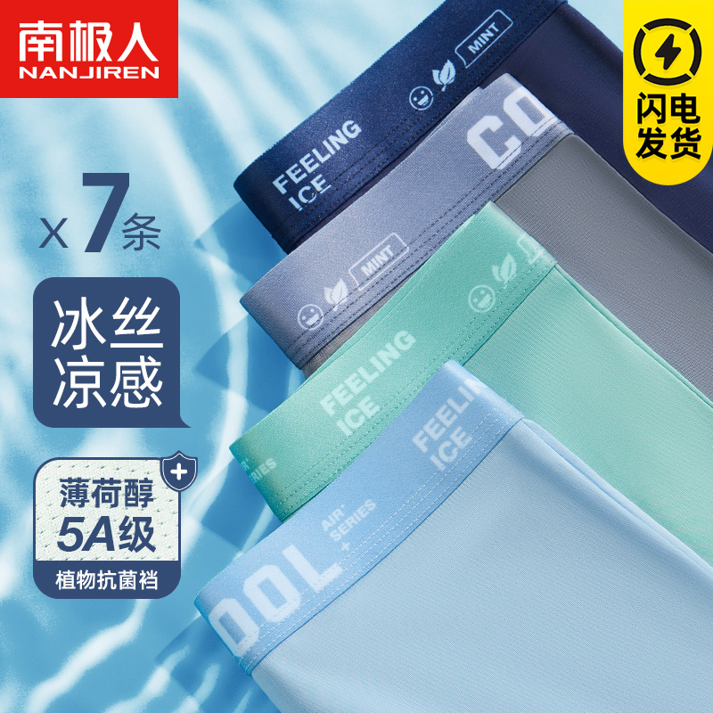 【产品名称:南极人凉感冰丝无痕内裤男抗菌平角裤衩夏季薄款透气大码四角裤头】