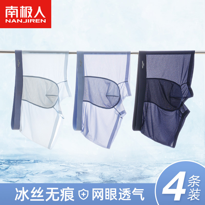 【产品名称:南极人冰丝无痕网眼透气男士内裤抗菌棉裆平角男生四角短裤夏季薄】
