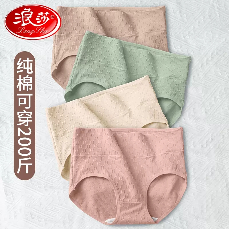 【产品名称:浪莎纯棉内裤女士高腰收腹提臀100%全棉抗菌女式大码妈妈三角短裤】