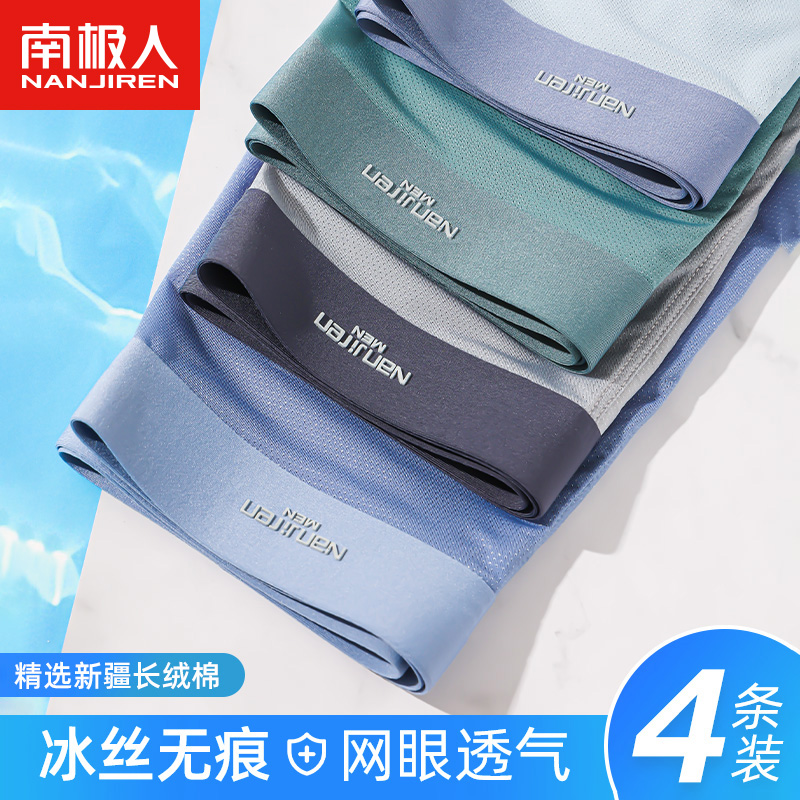 【产品名称:南极人冰丝抗菌内裤男士夏薄无痕网眼透气平角大码青年四角底裤衩】