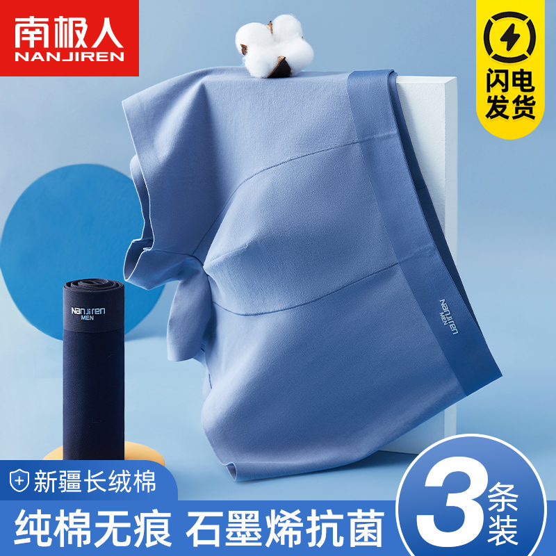 【产品名称:南极人纯棉无痕男士内裤抗菌透气夏季冰丝男生平角大码四角短裤头】