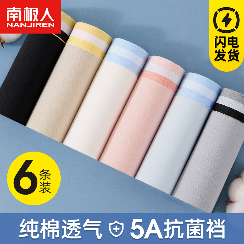 【产品名称:南极人纯棉内裤男士夏季薄款透气平角底裤性感大码宽松粉四角裤衩】