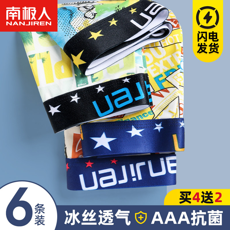 【产品名称:南极人冰丝内裤男士夏季透气抗菌薄款平角底裤大码中腰四角短裤头】
