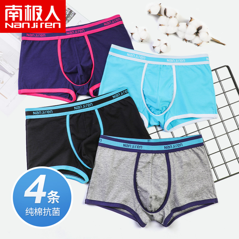 【产品名称:南极人纯棉抗菌男士内裤撞色缝线青少年潮流平角裤透气四角底裤头】
