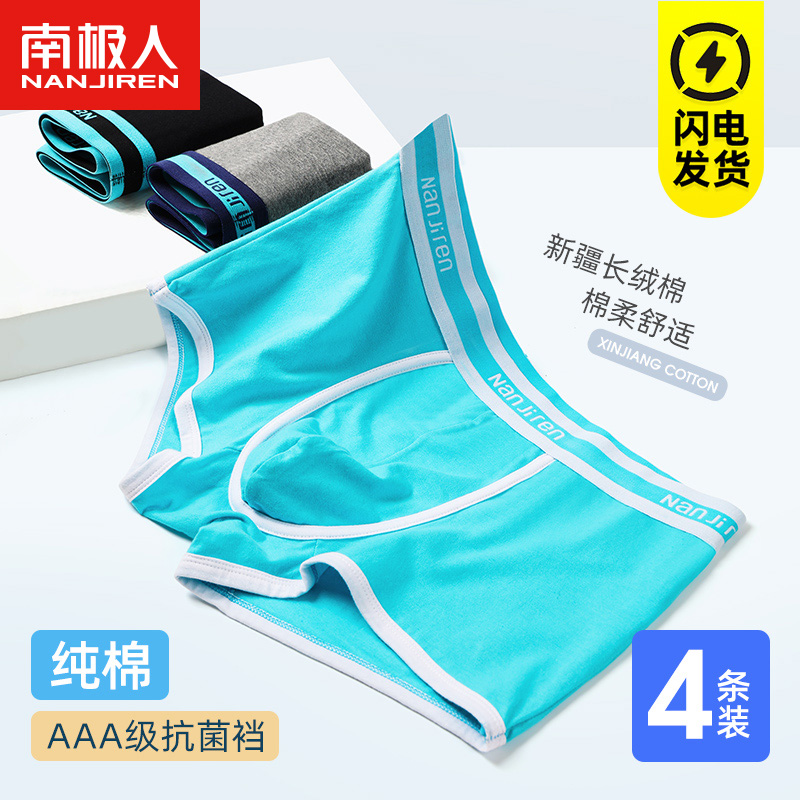 【产品名称:南极人纯棉抗菌内裤男潮流平角裤衩运动透气青年性感大码四角裤头】