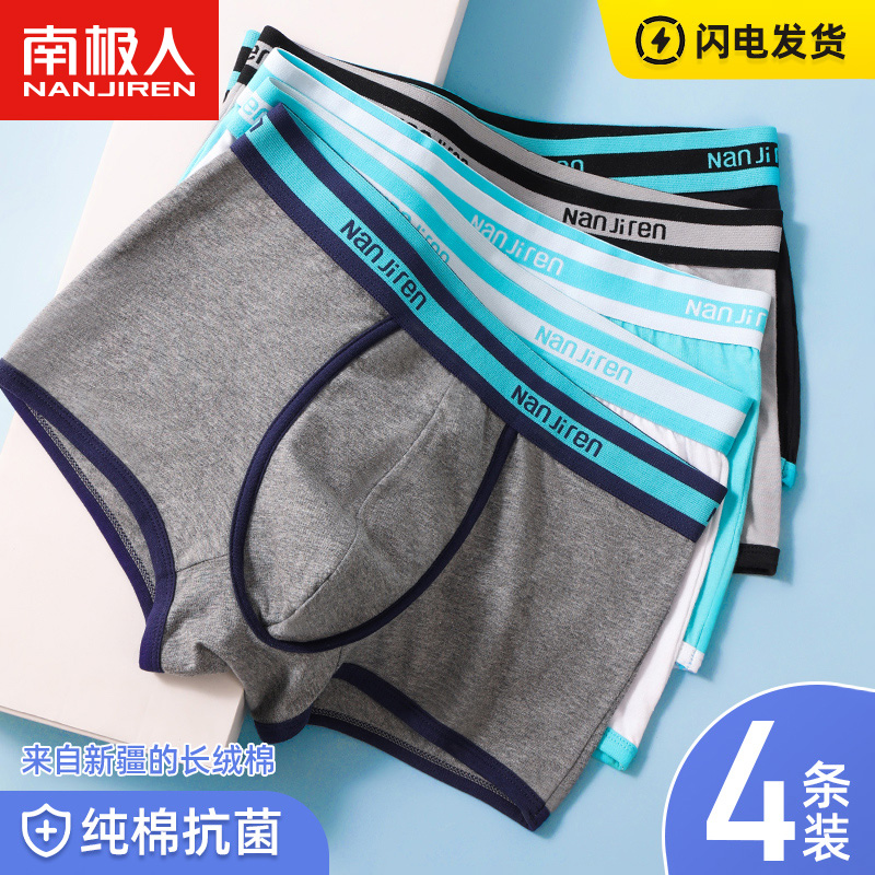 【产品名称:南极人纯棉抗菌内裤男士撞色青少年潮流个性平角裤透气四角底裤头】