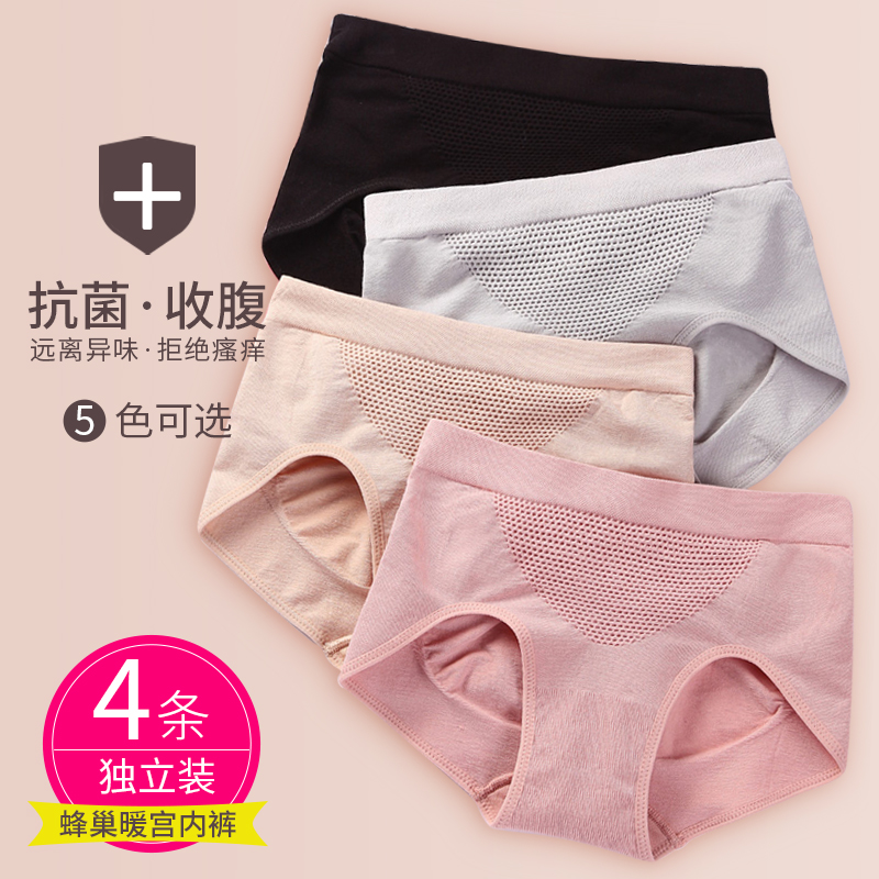 【产品名称:【4条装】内裤女士纯棉裆抗菌中腰收腹提臀无痕三角裤束腰蜂巢】