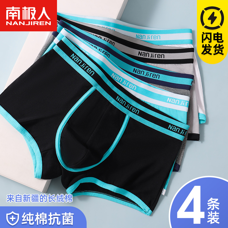 【产品名称:南极人潮流撞色男士内裤男生纯棉抗菌运动大码透气平角四角短裤头】