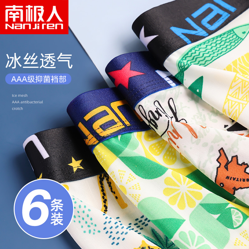 【产品名称:南极人冰丝凉感男士内裤男生无痕平角裤衩夏季薄款透气四角底裤头】