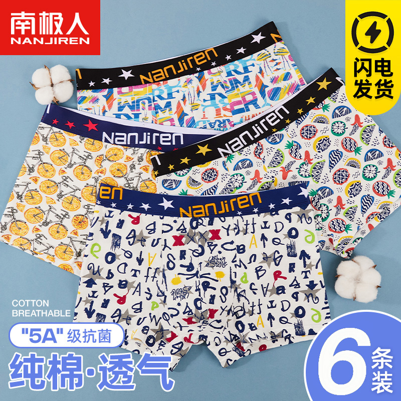 【产品名称:南极人男士内裤男纯棉四角裤潮流个性青年透气抗菌裆印花平角短裤】