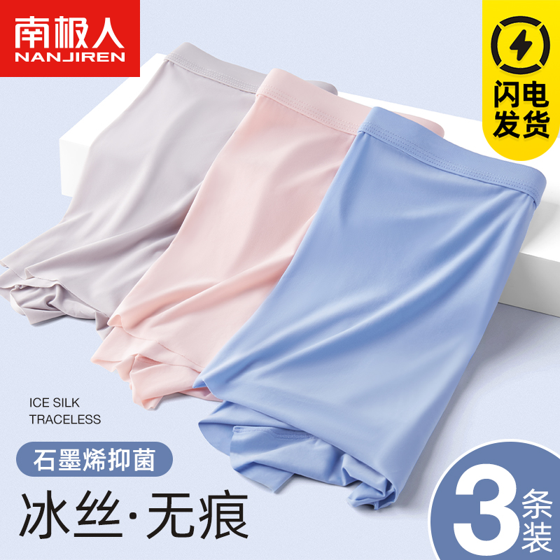 【产品名称:南极人冰丝凉感内裤男抗菌透气速干平角无痕四角裤头大码夏季薄款】