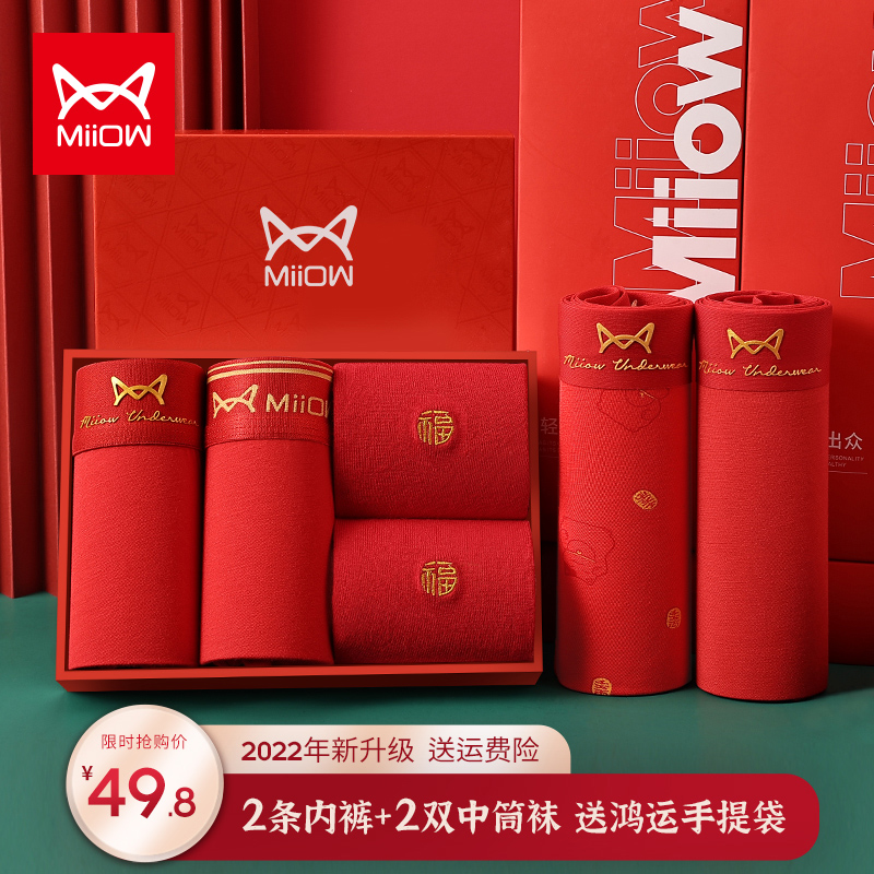【产品名称:猫人本命年男士内裤男莫代尔平角裤大红色龙年结婚礼物四角短裤头】