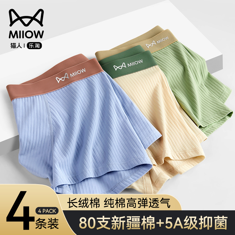 【产品名称:猫人男士内裤男生纯棉四角裤抑菌透气夏季男款青年大码平角短裤头】