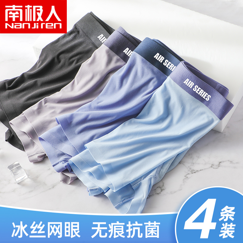 【产品名称:南极人冰丝抗菌内裤男士夏薄新款网眼透气平角无痕大码四角底裤衩】