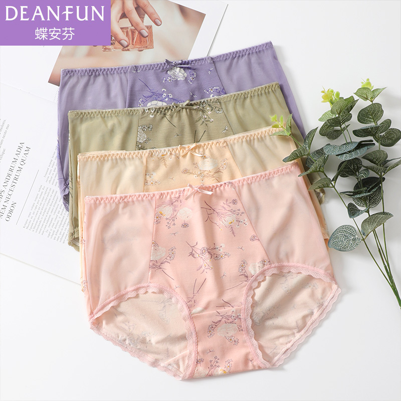 【产品名称:蝶安芬女士内裤女中腰平角蕾丝花边莫代尔柔软舒适透气性感4条装】