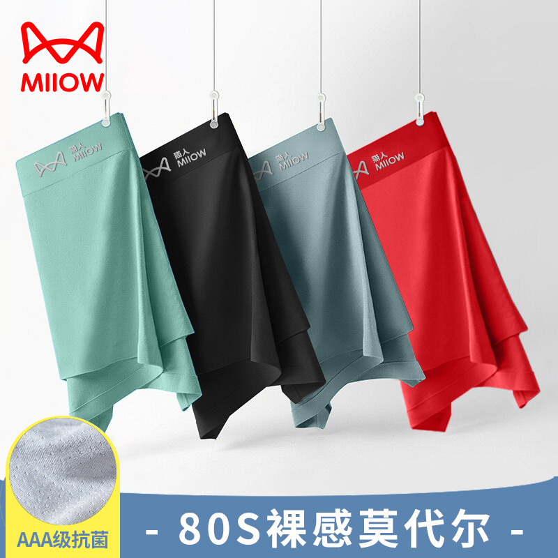 【产品名称:猫人男士内裤男抗菌四角裤无痕80s莫代尔透气潮流青年纯色平角裤】