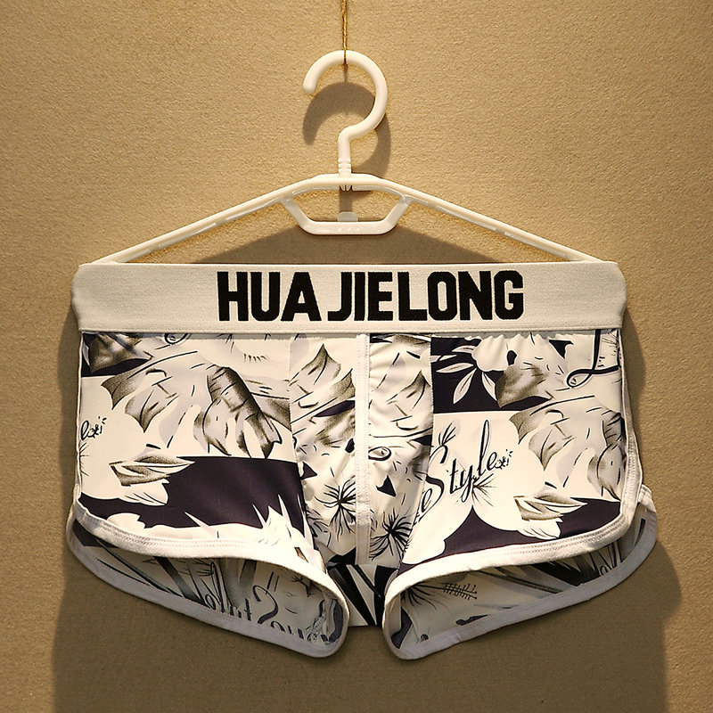 【产品名称:3条冰丝男士内裤潮男印花超薄透气四角裤头青年时尚真丝平角短裤】