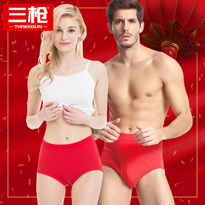 【产品名称:三枪喜庆内裤本命年结婚大红短裤纯棉结婚宽松男女三角裤龙年】