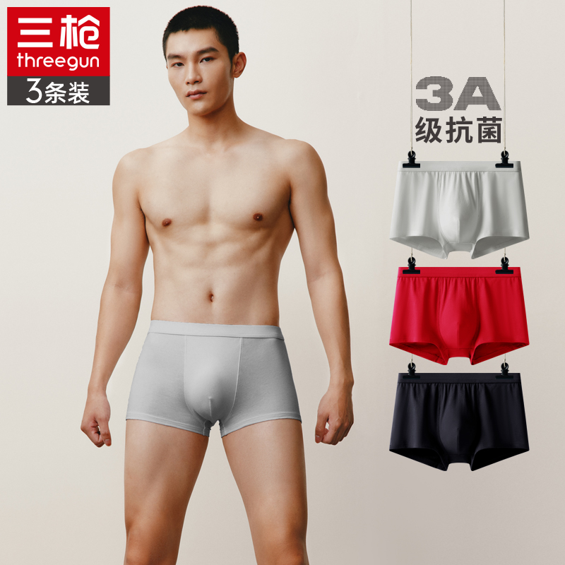 【产品名称:三枪男士3A抗菌莫代尔超薄弹力男生结婚平角裤透气内裤四角短裤难】