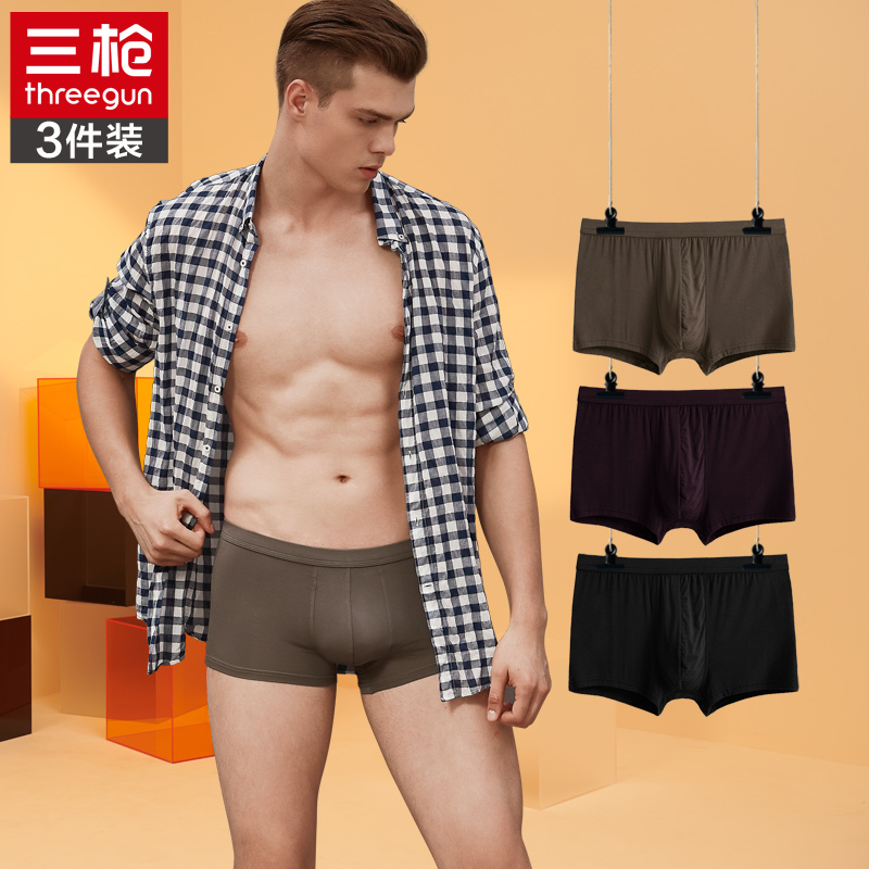 【产品名称:三枪内裤男弹力棉舒适四角裤中腰透气无痕棉质纯色平角裤裤衩短裤】
