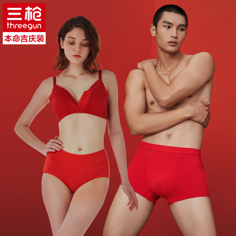 【产品名称:三枪内裤男女本命年红莫代尔平角裤中腰龙年四角裤弹力无痕短裤】