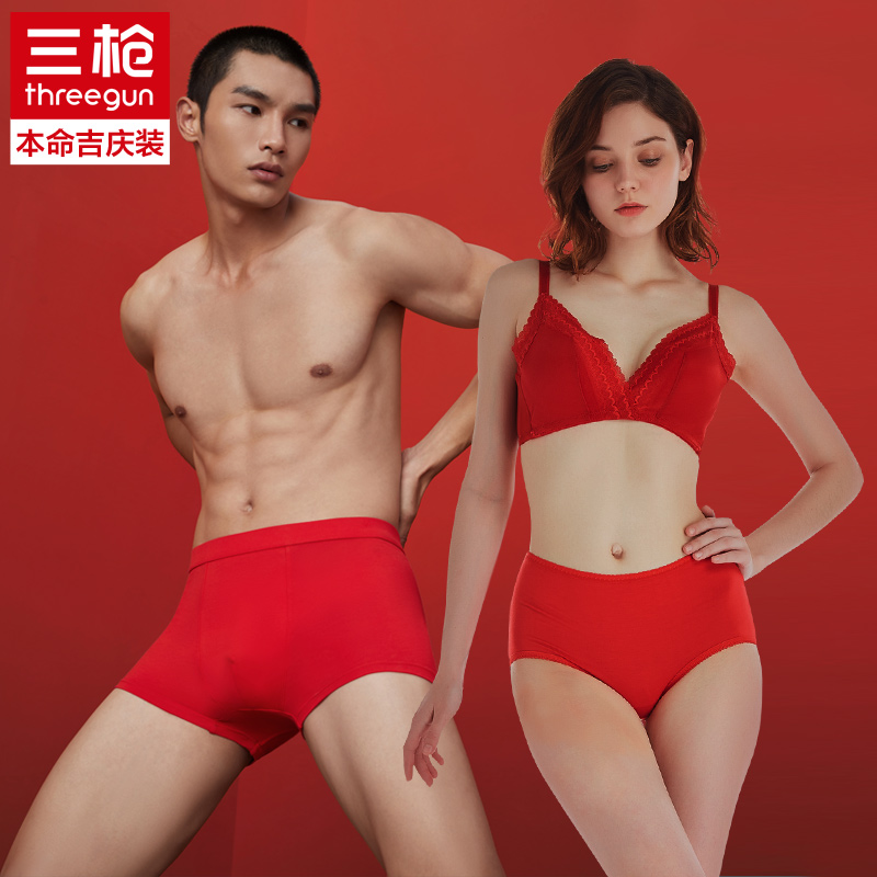【产品名称:三枪内裤男本命年红色短裤龙年四角裤平角裤女士莫代尔红底裤裤头】