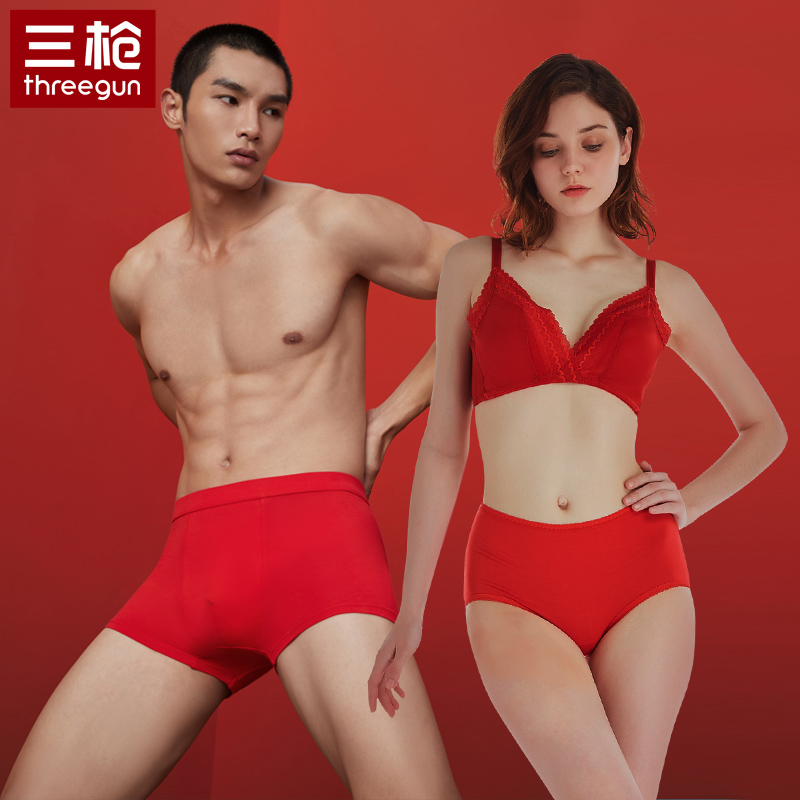 【产品名称:三枪本命年抗菌红色女士三角裤结婚薄款弹力龙年男士平角裤内裤】