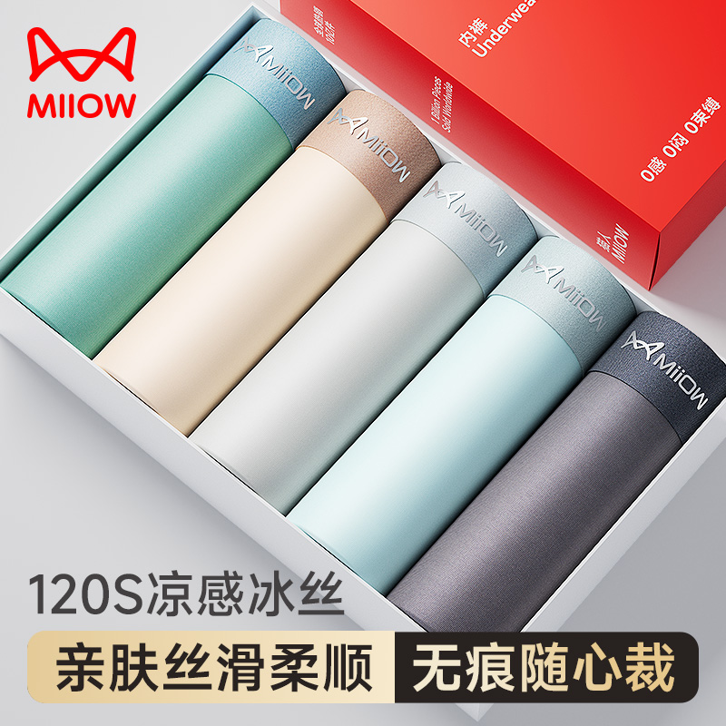 【产品名称:猫人男士内裤冰丝无痕凉感夏季薄款抗菌纯棉裆男生平角四角短裤头】