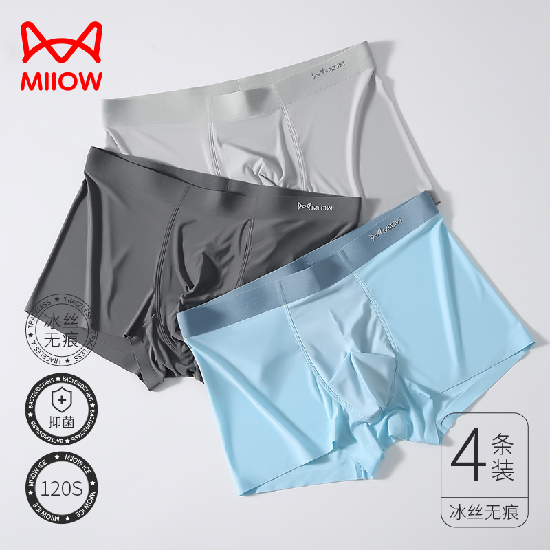 【产品名称:猫人男士内裤男冰丝平角裤无痕抑菌裆透气男生大码薄款四角短裤衩】