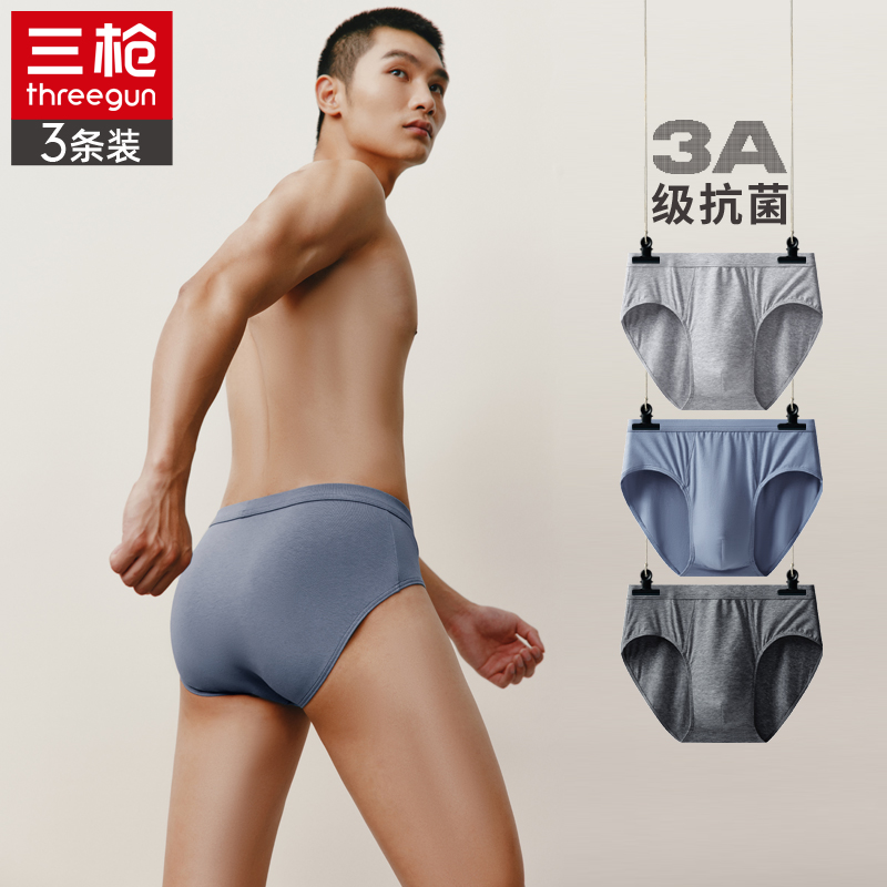 【产品名称:三枪男士抗菌无痕透气三角裤中腰内裤柔软棉质超薄弹力裤头裤衩】