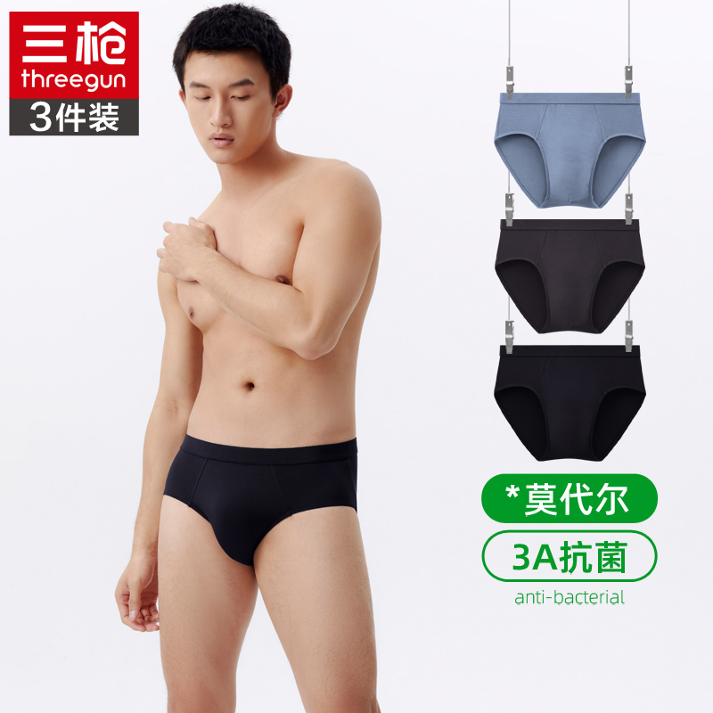 【产品名称:三枪官方新款透气莫代尔弹力男士三角裤3A抗菌包根薄款男生内裤男】