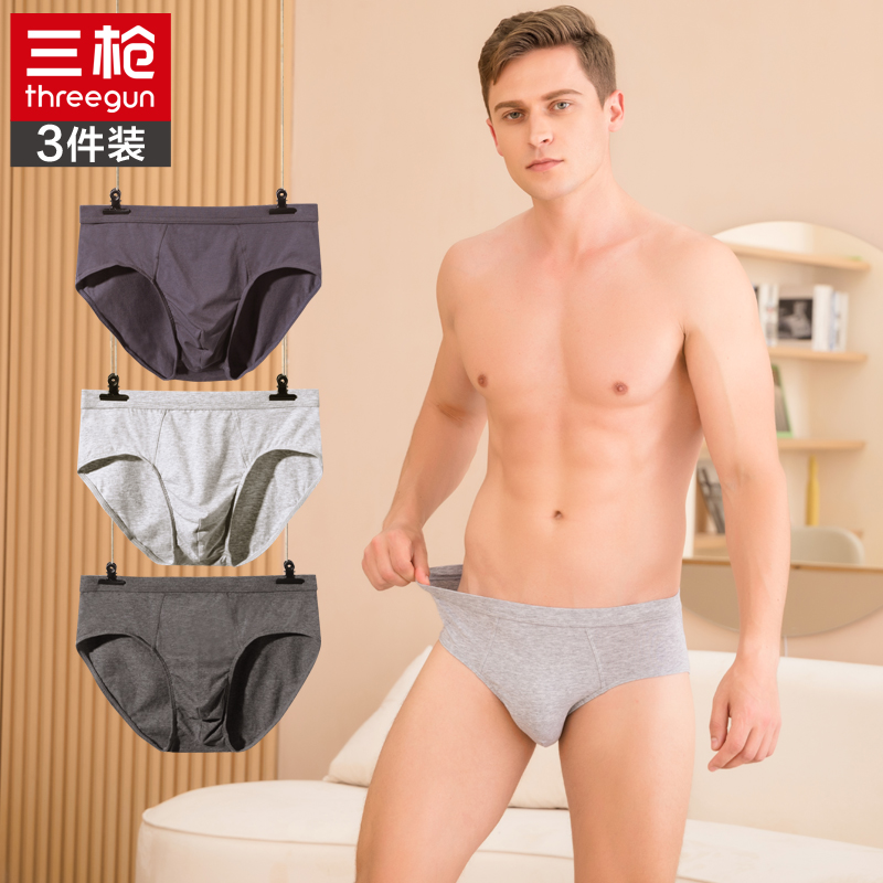 【产品名称:三枪 男棉质弹力透气纯色三角裤透气抗菌无痕大码柔软内裤 3条装】