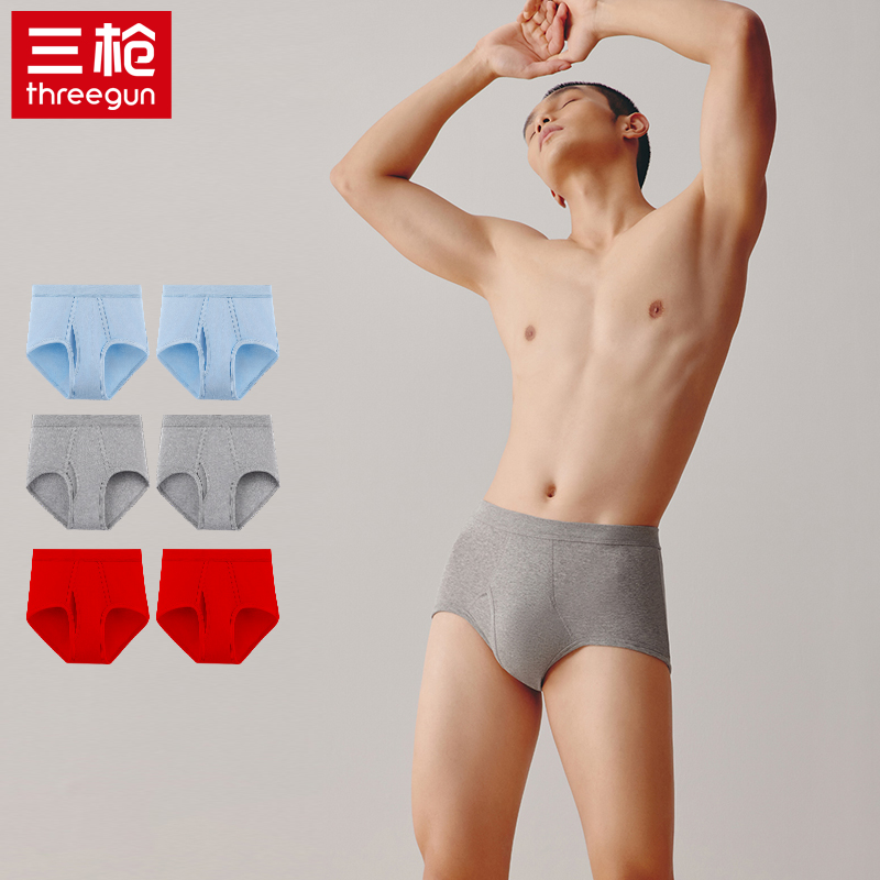 【产品名称:三枪本命年红色亲肤男士纯棉内裤收腹大码全棉高腰弹力棉三角裤】