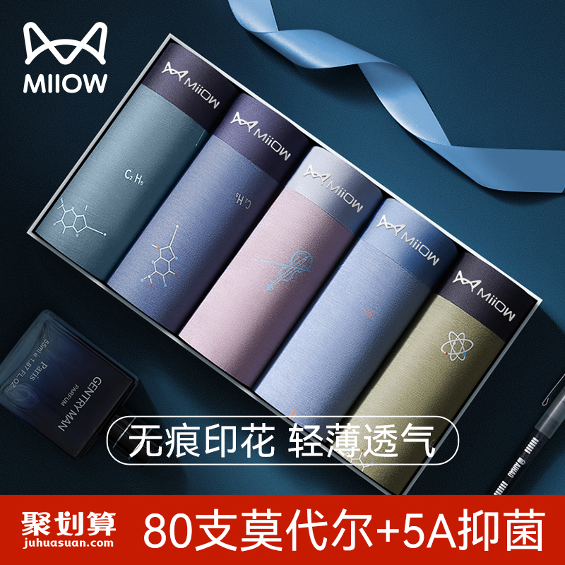 【产品名称:猫人莫代尔男士内裤2023新款冰丝四角裤衩男生平角短裤头男款夏季】