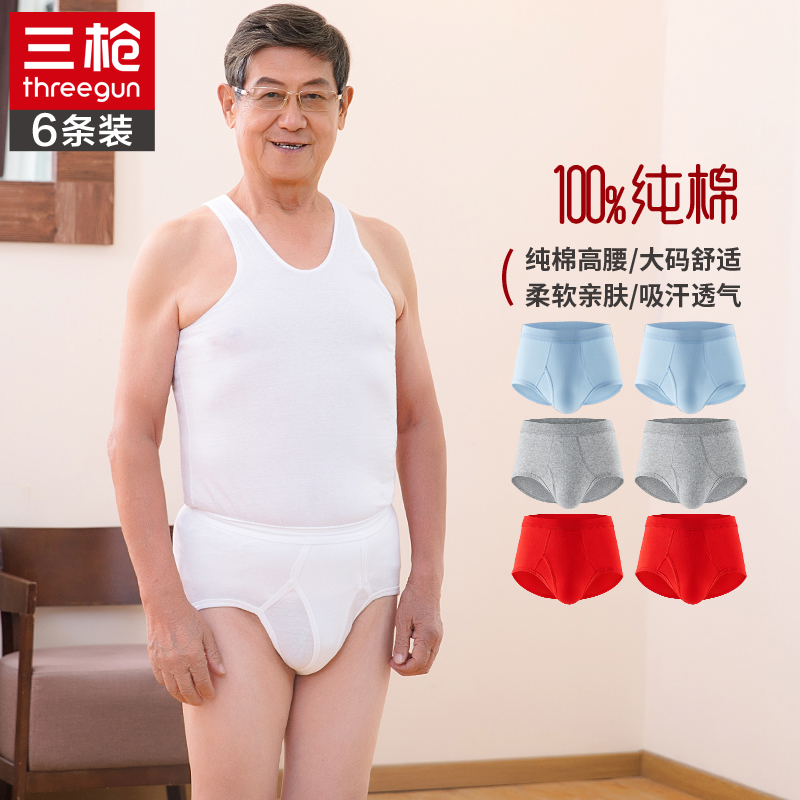 【产品名称:三枪本命年红色男士纯棉内裤爸爸全棉高腰老人弹力棉老年三角裤】