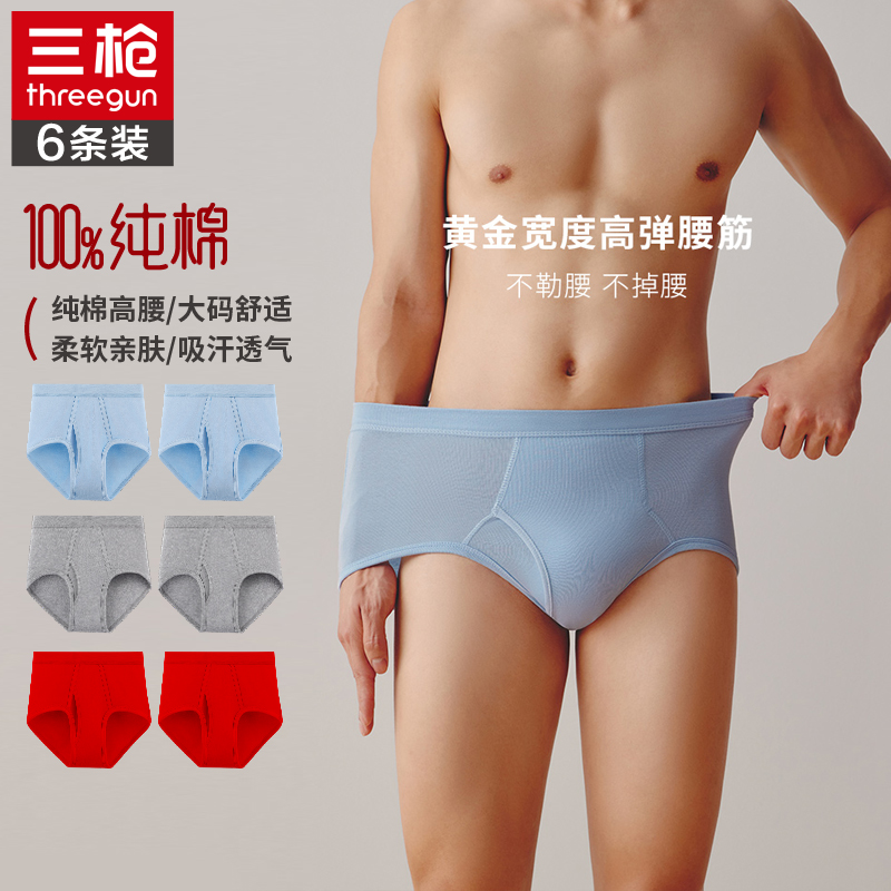 【产品名称:三枪男士纯棉内裤收腹大码全棉高腰青年弹力棉亲肤透气薄款三角裤】